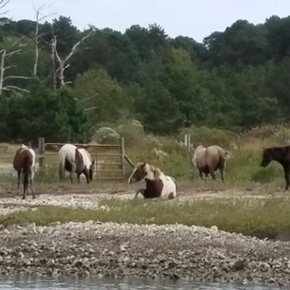 he environment. The auction is a humane way to control the population. The auction money also goes towards the auction is also a fund raiser for the Chincoteague Volunteer Fire Company. The Chincoteague Volunteer Fire Company uses the proceeds from the auction to buy fire fighting equipment and to provide veterinary care for the herd. The tour guide also mentioned, that there also is an auction simply to name ponies, which most people go for. The Wild life was breath taking, we were lucky enough to pass a pod of dolphins and catch a glimpse of a bald eagle. We saw many different herds of both Chincoteague and Assateague Ponies. They were so graceful as we watched them gallop through their fields. there were a few foals too, we even saw one drinking from its mother, they were SO CUTE!!!! We highly recommend a trip to the Island for anyone and everyone, it was a lot of fun!